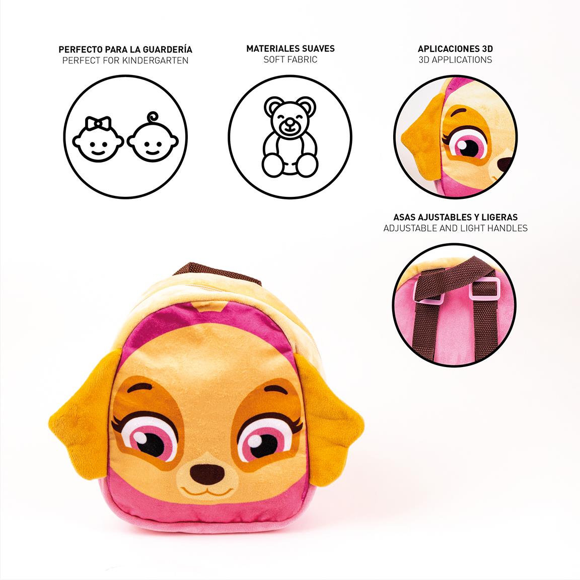 Mochila Patrulla Canina, personaje Sky. Tacto muy suave, efecto peluche, con orejas 3D.